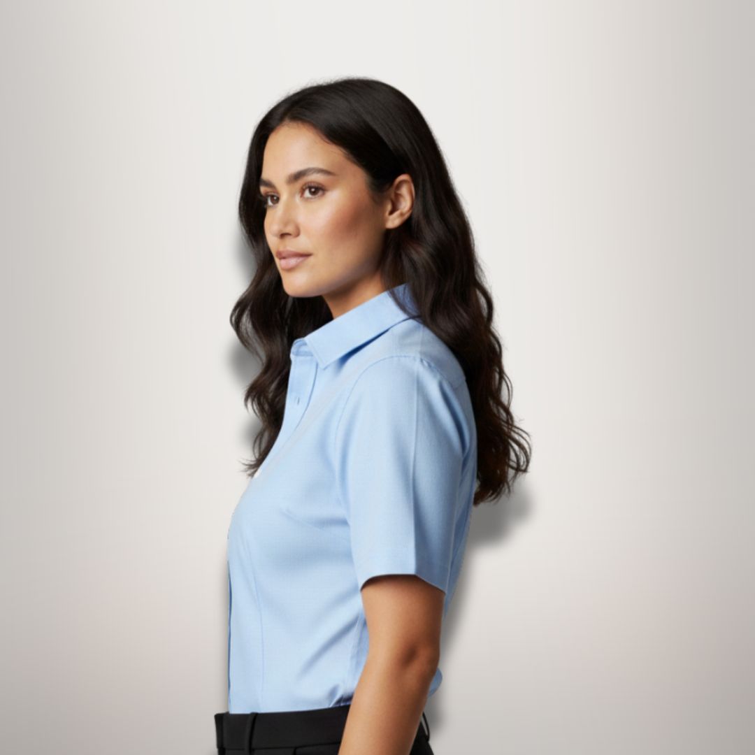 Camisa Oxford Manga Corta Mujer Azul
