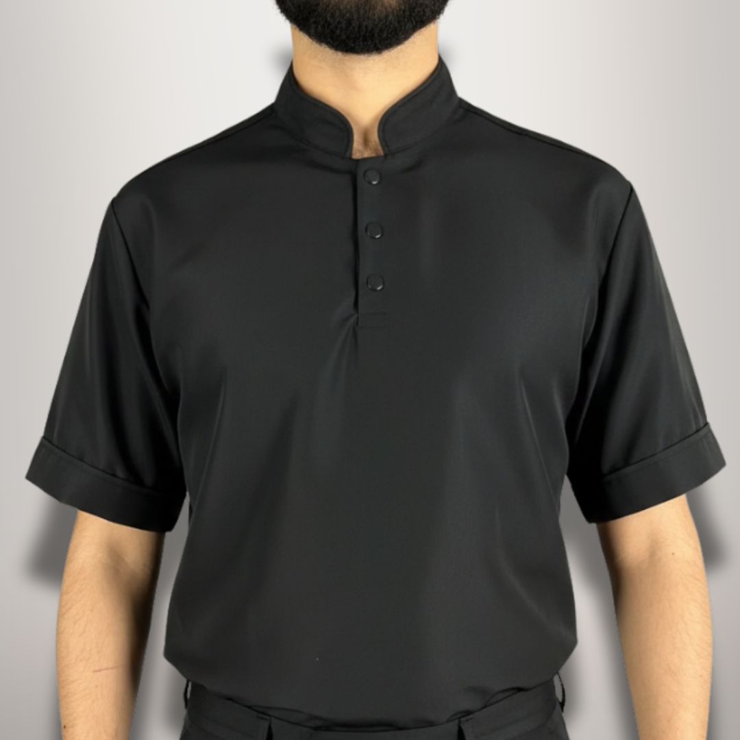 Camisa negra cuello nerú, manga corta