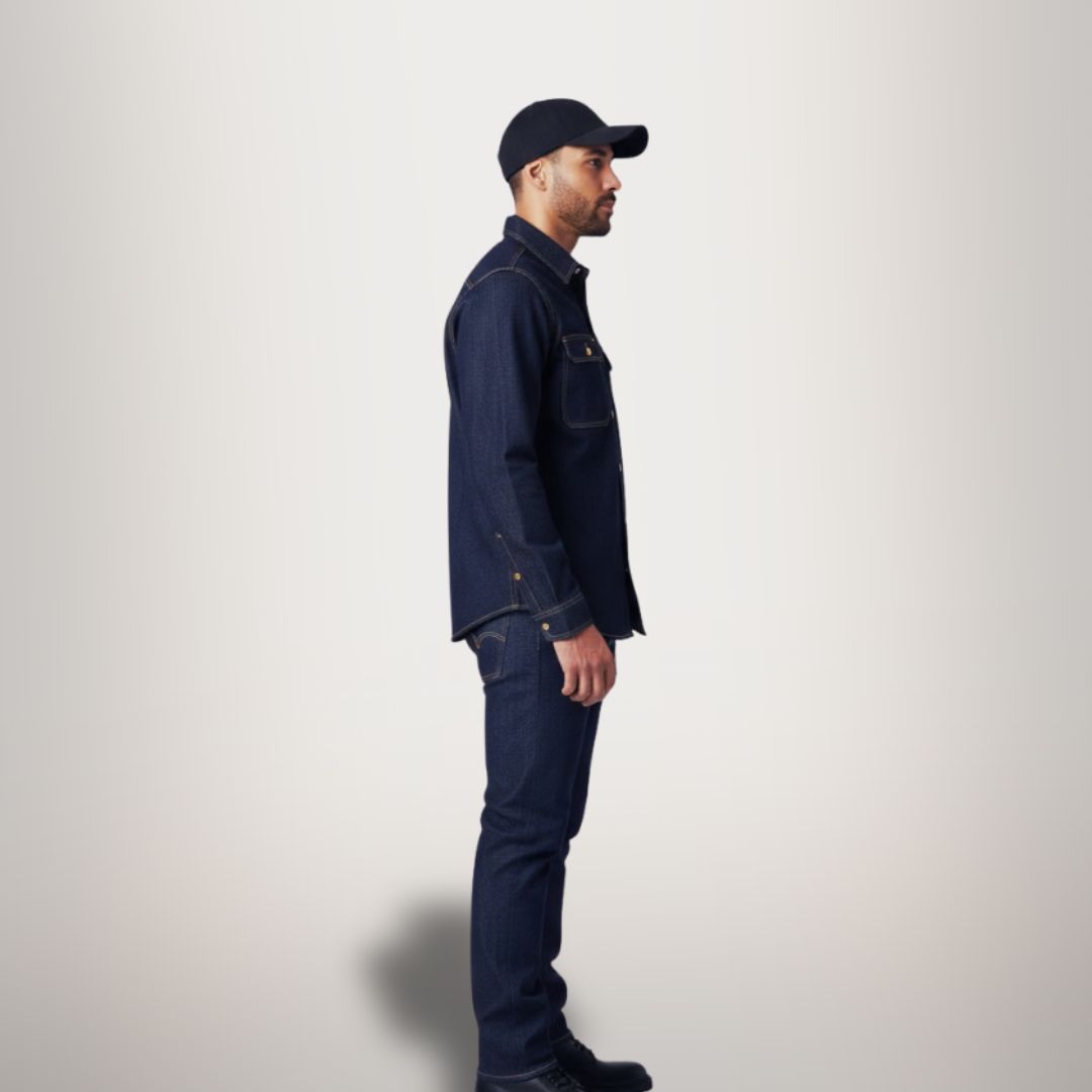 Lleva camisa de jean 7 oz +pantalón en jean y te obsequiamos cachucha negra GRATIS por la compra del combo. Ideal para obra, industria, logística, talleres, bodegas y trabajo en campo.